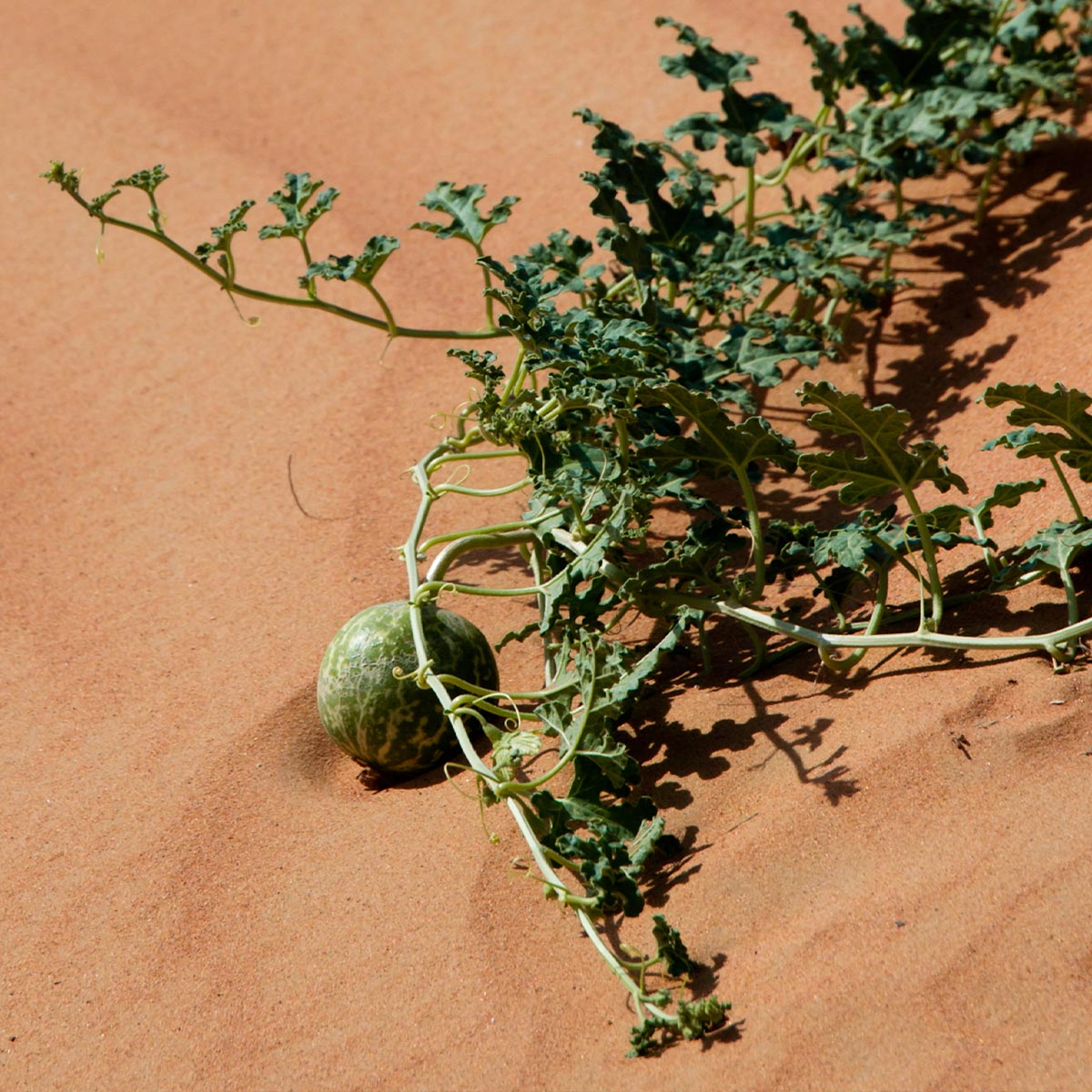 Key to the diet of the San people of southern Africa as they travel across the harsh Kalahari desert, the melon’s seasonal presence dictates when they undertake their journey through the sparse and unforgiving landscape. The Kalahari melon’s incredible properties means that it can sustain a human for a number of weeks alone, without any other food or water.