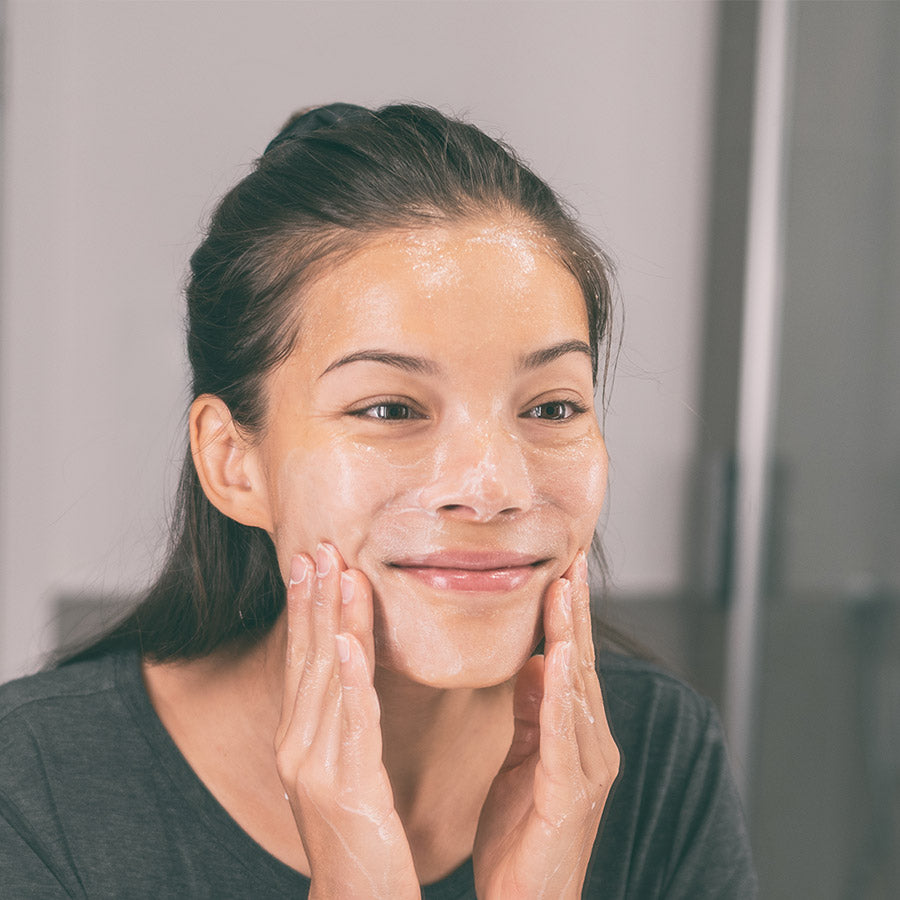 • Wet fingertips with warm water and continue to massage the face and neck helping to remove dirt from clogged pores